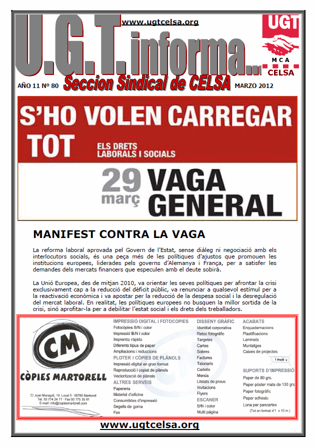 UGT- Informa Aquí tienes la última publicación de la revista de la UGT-Celsa para poderla descargar. Descarga